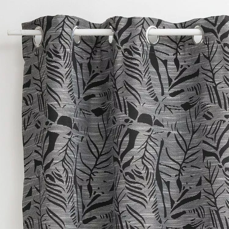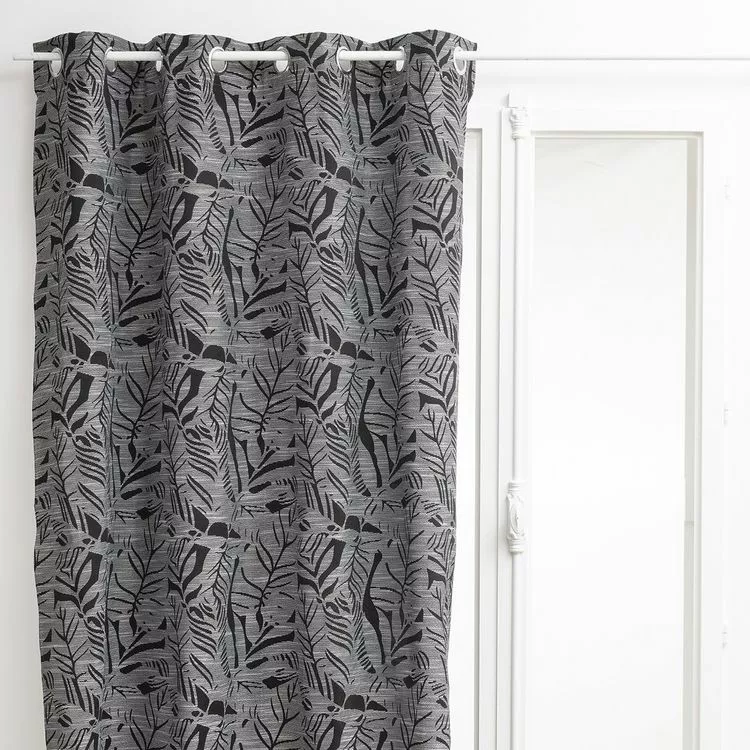 Rideau à œillets jacquard 140×260 Folha noirPrêt à poser grâce à ses œillets métalliques, le rideau jacquard Folha coloris noir sera du plus bel effet dans votre intérieur avec son style floral élégant dans les standards de style du moment.Le rideau jacquard Folha habillera votre fenêtre avec sa hauteur de 260 cm. Il possède 8 oeillets métalliques.Caractéristiques du rideau jacquard 140×260 Folha noir :Couleur : noirRideau de dimension 140×260 cmMatière : polyester, viscose8 oeillets métalliquesPoids : 900 gVendu à l’unité.